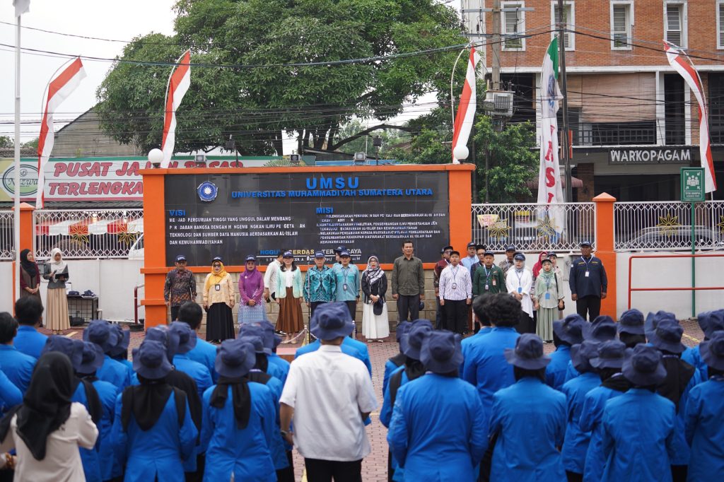 Upacara pemberangkatan berlangsung khidmat dengan rangkaian acara resmi, mulai dari menyanyikan Indonesia Raya dan Mars Muhammadiyah hingga penyematan atribut KKN. Hadir dalam kesempatan tersebut Kepala Dinas Perpustakaan dan Arsip Provinsi Sumatera Utara, Desni Maharani Saragih, S.STP., M.Si, Rektor UMSU, Prof. Dr. Agussani, M.AP., yang diwakili oleh Wakil Rektor I UMSU, Prof. Dr. Muhammad Arifin, M.Hum., serta Kepala Perpustakaan UMSU, Dr. Muhammad Arifin, M.Pd.
